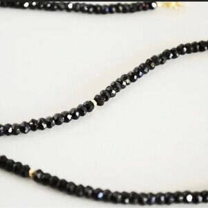 This is a unisex Black Spinel necklace that many customers love. The Black Spinel gemstones are strung on wire with gold filled (not plated) beads and ended with a gold filled spring clasp. I added a 1.5 inch extender so you can choose the length.