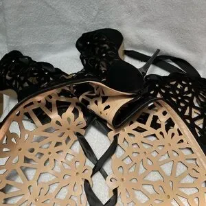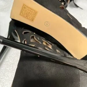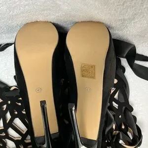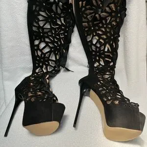 EUC Step out in style with these elegant black lace-up boots. Perfect for any occasion, these boots offer a unique design and a comfortable fit.