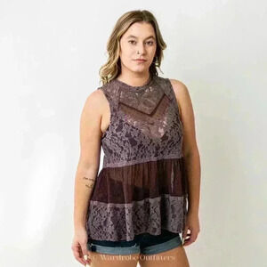 Free People Plum Sheer Needle Lace Sleeveless Tank Blouse