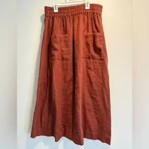 NPL custom XL Sion skirt in heavy redwood. It has two patch pockets on the front and less volume than the base style. Never worn. Waist is 16 inches unstretched elastic and it is 37 inches long.