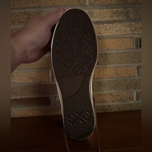 Experience timeless style with these Converse high-top sneakers, featuring a rich brown leather upper and a contrasting white rubber sole. The classic lace-up design and signature Converse silhouette make them a versatile choice for any casual occasion. Is this business casual or skater formal? New without tags! I’ve never worn them because I have a knack for getting my shoes dirty! Size 10.5 Men’s or 12.5 Women’s!