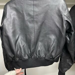 This leather jacket is designed to a relaxed fit