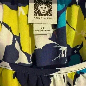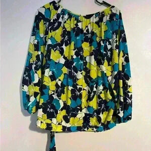 Anne Klein XL women’s top. Blue, green white with a tie at the waist EUC