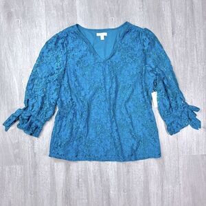 Size L blue color lace top. 3/4 sleeves. New with tags.