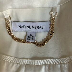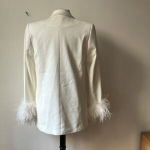Nadine Merabi white satin evening jacket with ostrich cuffs size 6