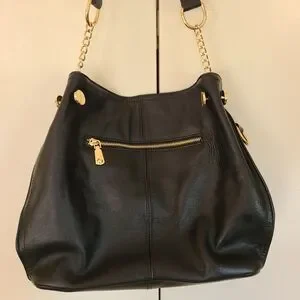 Jose Hess Signature Leather Hobo Bag – Black with Gold Hardware