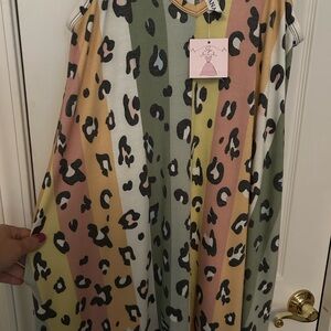 NWT Zenana Leopard Print Multicolor Maxi Dress