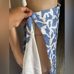 Stylish fabric with a blue and white pattern. Ideal for fashion projects.