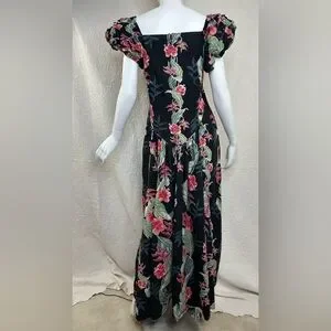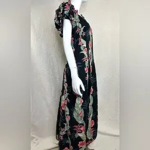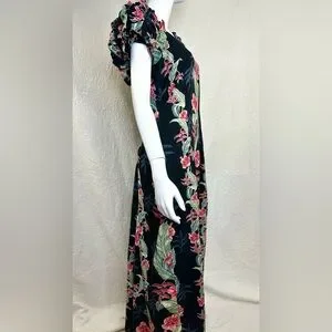 Vintage T&L Muumuu Factory Hawaii Floral Puff Sleeve Maxi Dress