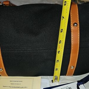 Dooney & Bourke Medium Black Canvas and Brown Leather Trim Satchel