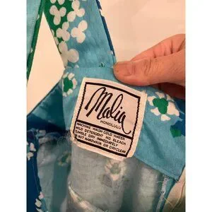 Vintage Malia Honolulu Hawaiian Summer Blue Retro Floral Design Maxi Dress