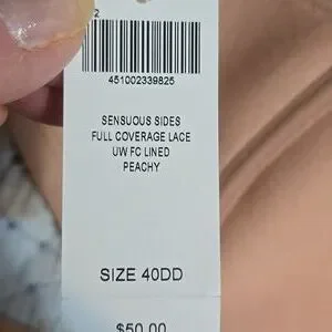 Soma Sensuous Sides Full Coverage Lace Peach Bra Size 40DD NWT