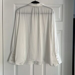 NWT White satin work blouse, pearlized buttons