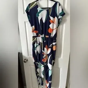 Cuddl Duds Flexwear Short Sleeve Jumpsuit Floral Navy Multicolored Sz M