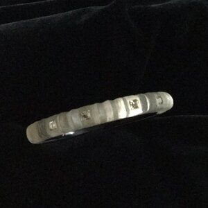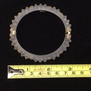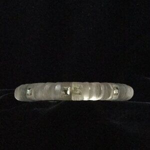 Alexis Bittar Teatro lucite hinged bracelet with dust bag. Warm gray color that seems to glow from within with six rhinestones on each side. Purchased at AB’s boutique in San Francisco. Worn just a few times. Beautiful and elegant. Great for layering. Excellent condition!