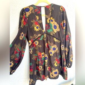 NWOT FREE PEOPLE Strawberry Fields Floral Tunic Dress Brown Long Sleeve Boho SM