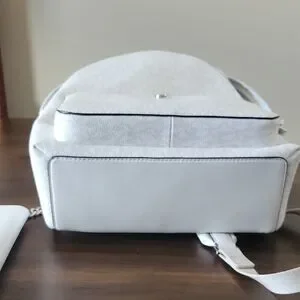 New condition, clean inside and out, no damage. Discover the elegance of the Michael Kors White Backpack, crafted from premium leather with a minimalist design. This sophisticated bag combines modern style with practicality, making it an ideal choice for everyday use. Its sleek silhouette and monochromatic color scheme ensure a timeless appeal.