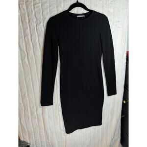 ZARA TRAFALUC Black Bodycon Midi Long Sleeve Dress Basic Classic Sleek Small