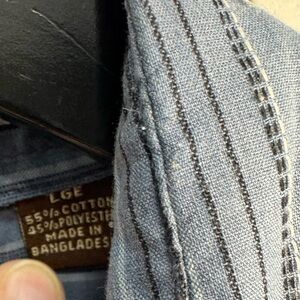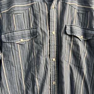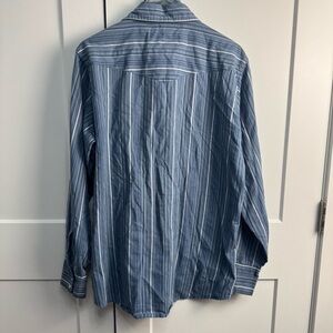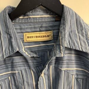 Bit & Bridle Blue Striped Long Sleeve Western Pearl Snap Button Down Shirt Large