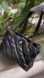 Black leather sexy puffy tote - two handle gold chains say LUXURY