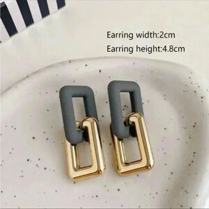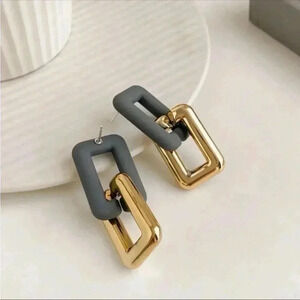 These modern chic, gray and gold chain-link earrings make a big statement. A little industrial. Exceptionally chic. Fun addition to your closet. Metal alloy and PCS.