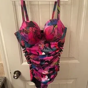 Torrid Pink and Purple Floral Swimsuit with Matching Kimono (Size 2 - 16/18)