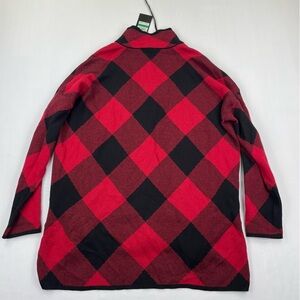 Jones New York Signature Sweater Womens L Plaid Red Black Buffalo Check Knit NEW