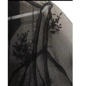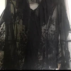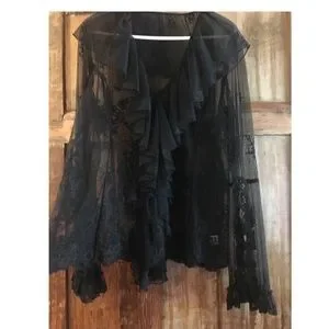 This elegant black lace blouse is perfect for any occasion. Its intricate design adds a touch of sophistication to your wardrobe. EUC. Pet and smoke free home.