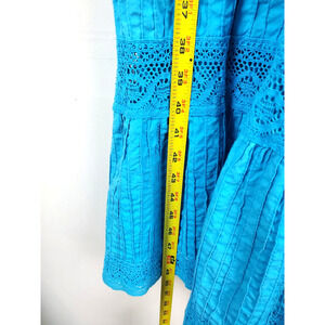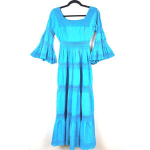 Vintage Womens Small Dress Long MAXI Bohemian Crochet Lace Flare Sleeve 1970s or 60s, cotton , not stretchy, pleated, PLEASE see measurements in the photos to ensure fit. Unique dress, very Romantic Boho CottageCore Party dress.
