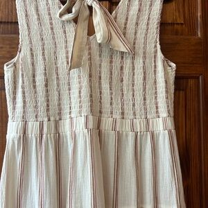 This elegant cream sleeveless dress is perfect for any occasion. Its flowing design offers comfort and style. For reference, I am 5,0” tall and this fits me more like a Maxi dress. If you are taller, it would be more Midi. Stretchy on top.