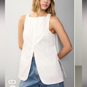 White (95% Cotton, 5% Elastane). Top. Sleeveless. Square neck. Front button closure. 29" from shoulder to hemline. Imported
