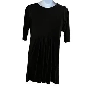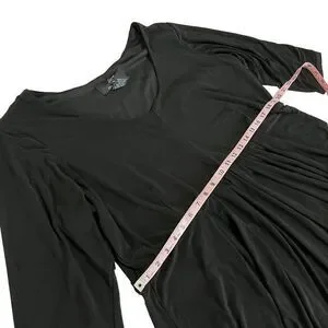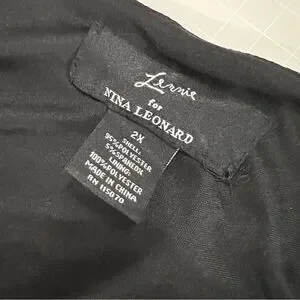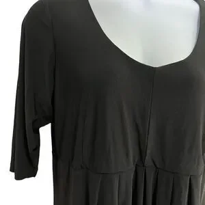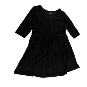 Lennie for Nina Leonard Elbow Sleeve Black Fit & Flare Dress. Size 2X. Poly/spandex blend. Great preloved condition. Designer tag unstitched on one side. Bust: 19” Length 36.5”