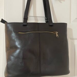 This Patricia Nash shoulder bag showcases a sophisticated blend of black and brown leather in a striking geometric pattern. The structured design and smooth leather offer a timeless appeal, making it a versatile accessory for any occasion. With its elegant shoulder straps, this bag is both functional and stylish, perfect for carrying your essentials in style.