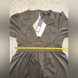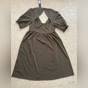 Disturbia Green V-Neck Puff Sleeve Midi Dress