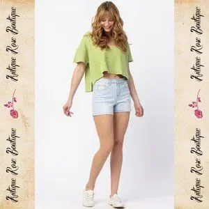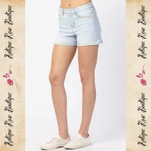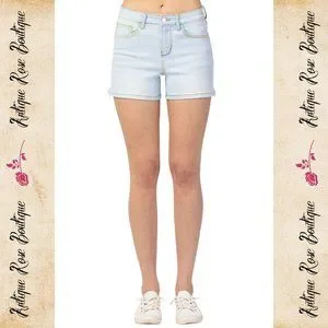 🌹 Judy Blue Rainbow Thread Mid Rise Shorts