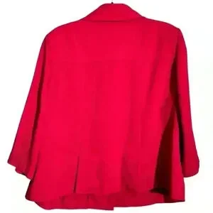Elevate your wardrobe with this stylish Lane Bryant jacket in a vibrant red, perfect for making a statement. Crafted from a cozy wool-feeling texture, this size 20 piece features two functional front pockets and oversized black buttons that add a bold contrast. The platter-style collar enhances its chic look, while double back detailing and double vent pleats at the backside provide a flattering silhouette and ease of movement.