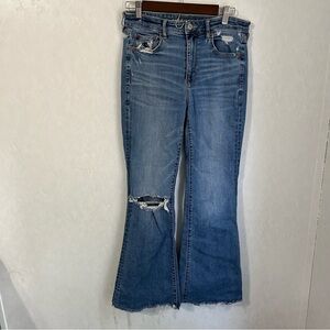American Eagle Outfitters Super High Rise Blue Flare Distressed Jeans Stretch