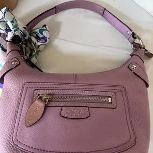 This Coach Penelope hobo bag in a rich lilac/lavender hue showcases a sophisticated crescent shape, perfect for adding a touch of elegance to any ensemble. Crafted with a smooth finish, it features a single shoulder strap for easy carrying. The minimalist design ensures versatility, making it an ideal accessory for various occasions. This bag is preloved so pictures are considered part of the description. Coach scarf is NOT included. All sales final so ask any questions before bidding.