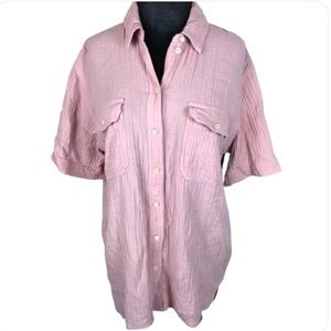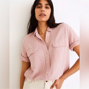 Madewell Shirt Lightspun Short Sleeve Flap-Pocket Dusty Pink 100% Cotton Gauze M
