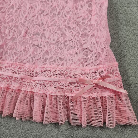Victoria’s Secret Lace Slip Women Large Y2k Hot Pink Sheer Babydoll Bow Lingerie