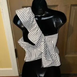 NWT Future Collective Black White Striped One-Shoulder Ruffle Top Size S