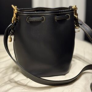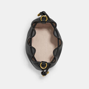 Glovetanned leather Drawstring closure fabric lining Detachable strap with 22 drop for shoulder or crossbody wear Four protective feet at base 6 1/2 (L) x 7 1/4 (H) x 4 1/2 (W) Style No. CJ835