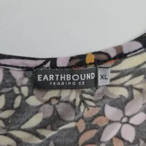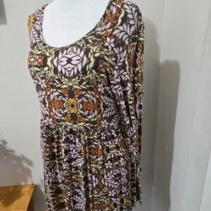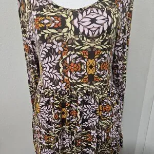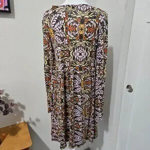 Earthbound Trading Co Fit Flare Long Sleeve Knit Flower Vine Dress - XL - Boho