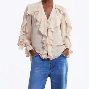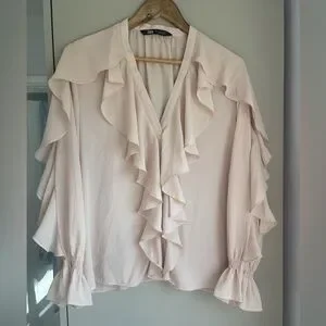 Zara light pale pink ruffle flowy blouse
