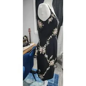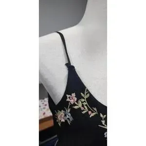 Step out in style with this charming black slip dress, beautifully adorned with delicate floral embroidery. Perfect for casual outings or special occasions, this dress combines comfort and elegance effortlessly. The lightweight fabric drapes gracefully, while the spaghetti straps ensure a perfect fit. Key features include: - Stunning floral embroidery accents - Soft, breathable material for all-day wear - for customizable comfort - Versatile black color that pairs well with any accessories - Ideal for layering or standalone wear. Make a statement with this timeless piece in your wardrobe.