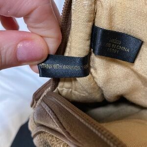 Two large outside pockets and a zippered inside pocket. 4 “feet” on the bottom. *This is a Used item and has a couple of very minor flaws. One stain in the front pocket it is not sticky but looks like it should be. *Minor discolorations in the bottoms of the pockets no major stains. Minus the one mentioned above. There is some dust in the lining seams I could not get out because the lining does not pull out. The gold tone buckles have a little fade to them. As this is a vintage item, please do not expect brand new pristine condition. It is excellent used condition, especially for a vintage piece. *This will need reshaping from being squished in storage. I’m guessing you could steam it but I don’t know for sure. I would definitely google it first. See the photos as they are part of the description Super cute *This is a handbag so the drop length is approximately 3 1/2”. Other measurements are in the photos. Definite conversation piece due to its age and being straw AND THE DESIGNER Smoke free home.**please note all vintage pieces may have a vintage smell from storage and need airing out.Not a bad smell, just an it’s a vintage item that’s been in storage smell, barely noticeable when displayed in my room.Retro