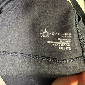 OFFLINE By Aerie Black Goals Velvet Trim Sports Bra XXL Adj. Waist Hook Closure