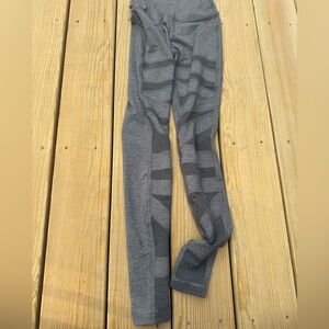 Experience ultimate comfort and flexibility with these heather gray leggings with a darker gray design from Lululemon Athletica. Crafted with a high waistband and seamless design, they offer a sleek and form-fitting silhouette perfect for any workout or daily wear. The stretchy fabric ensures ease of movement, making them an ideal choice for active lifestyles. One very small mark (only about a millimeter) on one of the back calves of the pants that looks like it would likely come off in the wash, I just don’t want to wash them again and create any extra wear on the material (pictured). Pants thoroughly checked and documented, including all seams (all pictured)