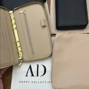 Everything you need to start your budgeting journey is right here. The Aesthetic Dollar is the top budgeting website to find lovely budgeting tools that make budgeting beautiful again. In this listing you have two of her wallets, from the poppy and Sophie collection. The Sophie fly leaf is also included in the wallet (separate purchase; wallet and fly leaf have never been used) and so are the essentials envelopes for beginners that use the Dave Ramsey method. You’ll also get an A5 planner from the Sophie collection ($75 value alone) that’s never been used. This planner cover also includes CLOTH AND PAPER monthly inserts from July until December as well as a yearly spread on vellum from c&p too. You’ll also get the poppy collection money bag, in the same soft pink color as your other wallet. I am also throwing in a bunch of free bees for this bundle. Mildliner hi lighters, disc agenda platinum discs, a bunch of sticky notes that are transparent and matte. A C&P metal ruler and some Aesthetic Dollar cards that come with your order.