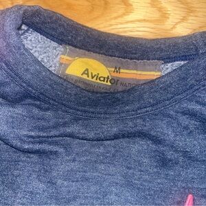 Women’s Aviator Nation Striped Cropped Sweatshirt Heather Navy/Neon Stripe M